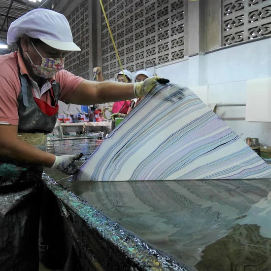 Kozo paper requires significantly fewer natural resources and chemicals to make, compared to its wood-based counterparts. We also incorporate other natural materials from agricultural by-products, such as sugarcane, bamboo, and mango into our works.