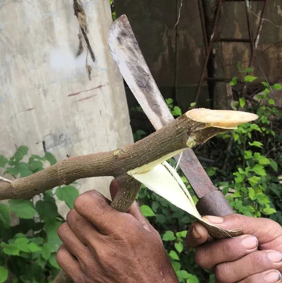 Only the inner bark is used, so we must carefully remove the outer layer.