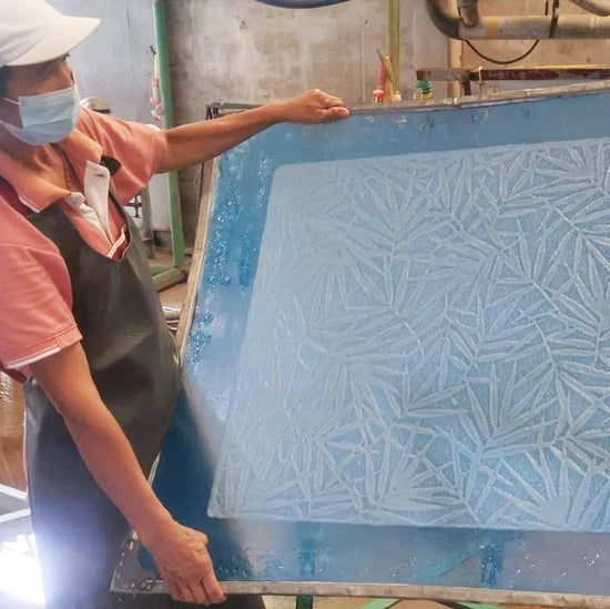 Unique technique is used to displace the pulp to make Handmade Lace Kozo papers.
